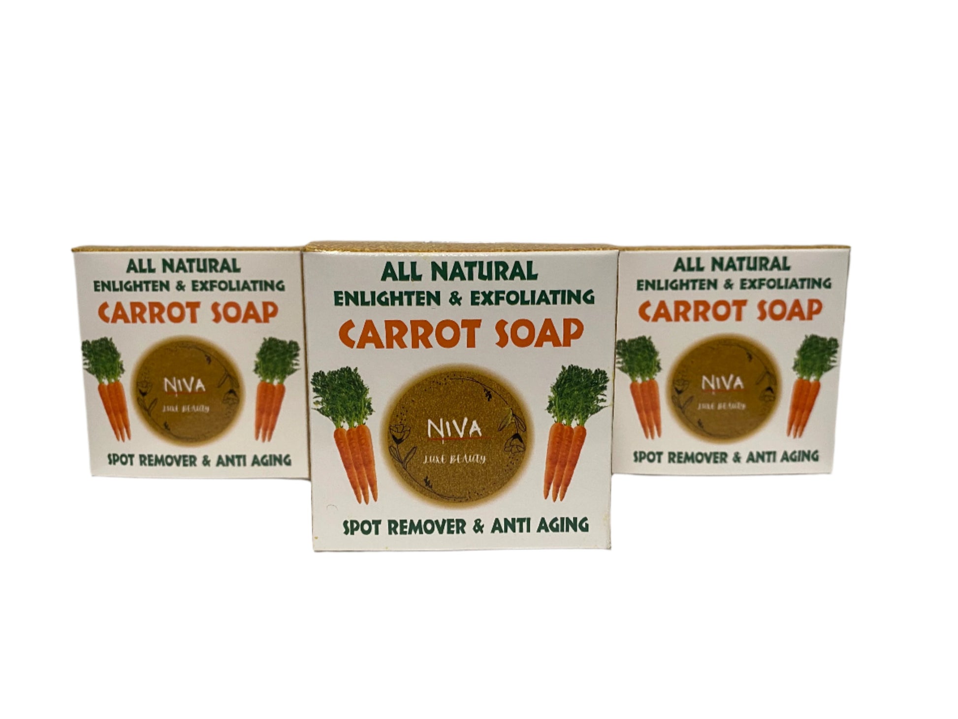 The Niva Luxe Beauty carrot soap is packed with the power of natural carrots. It is also filled with antioxidants and vitamin A, which are known to fight signs of aging and brighten skin tone. This carrot soap helps reduce dark spots and blemishes giving your skin a fresh even glow.